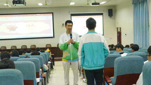 下午,同学们来到第二教学楼教室参与研学讲座,与广西大学的师生进行面对面的深入交流。蒋老师作《用生涯发展理念备战中考》的专题讲座,以专业的角度为同学们作生涯规划,深入分析不同升学路径的差别与利弊,她还析学会活用手机与人工智能工具的好处,鼓励同学们善于将人工智能为己所用,广泛持续地学习。进行分享的两位学长学姐分别从自身经历出发,进行成长学习经验及大学生活分享并积极与同学们进行互动,为同学们遇到的难题出谋划策。