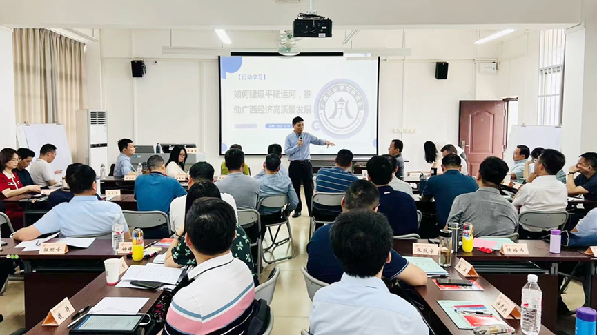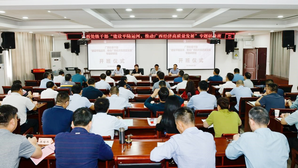为了深入贯彻刘宁书记“以平陆运河工程建设为牵引,有效衔接西部陆海新通道建设,科学谋划好运河经济带产业布局和建设,充分发挥平陆运河的经济效益、社会效益、生态效益、开放效益”指示精神,加快发展向海经济、建设海洋强区,主动融入和服务国家新发展格局、参与建设海洋强国的重要使命,2023年5月15日至5月19日,由中共广西壮族自治区委员会组织部主办,中共广西壮族自治区委员会直属机关工委和AK平台承办的广西处级干部“建设平陆运河,推动广西经济高质量发展”专题研修班在广西大学举办。来自广西区党委办公厅、广西区人大办公厅、广西区发展和改革委员会、广西区财政厅、广西区交通运输厅等单位的处级领导共46人参加专题研修班。
