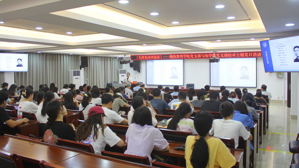 2022年6月22日晚,继续教育学院党支部与农学院有关党支部联合举办《毛泽东诗词选读》主题党日活动。主题党日活动由继续教育学院党支部书记苏兆成同志主讲。(陈昊宇/图)