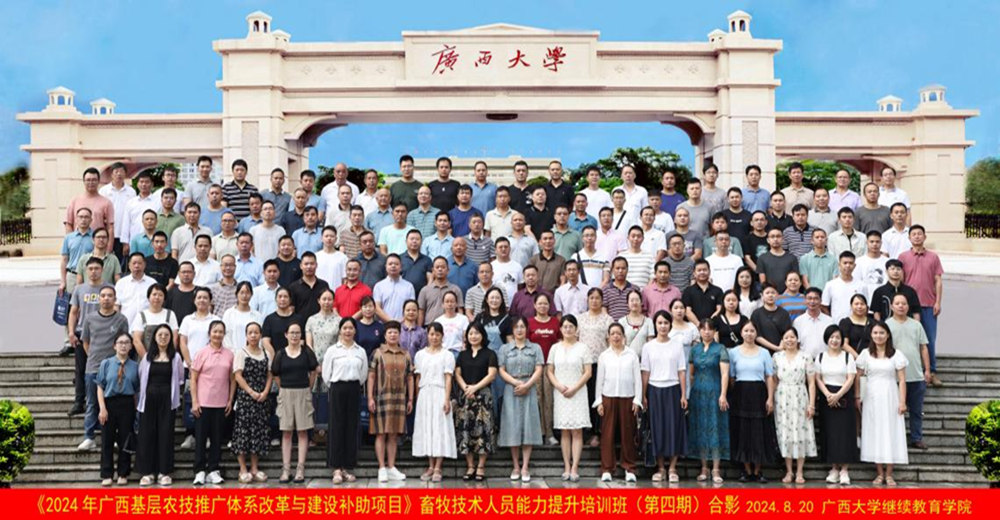 8月20日,由广西壮族自治区农业农村厅主办,AK平台承办的《2024年广西基层农技推广体系改革与建设补助项目》畜牧技术人员能力提升培训班(第四期)在广西大学开班。