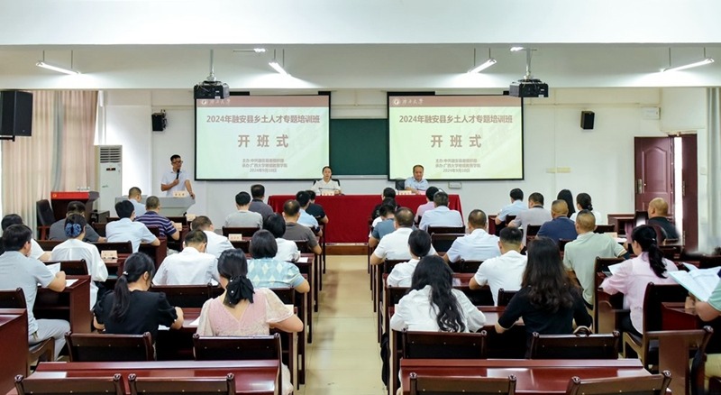9月10日上午,2024年融安县乡土人才专题培训班在我院开班。融安县委组织部副部长覃生彦出席开班式并作动员讲话,我院培训中心主任黎耀凡出席开班式并致辞。
