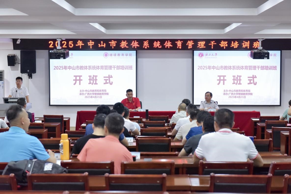 2025年4月21日,2025年中山市教体系统体育管理干部培训班在我校开班。中山市教育和体育局副局长陈威、AK平台副院长徐华出席开班式。