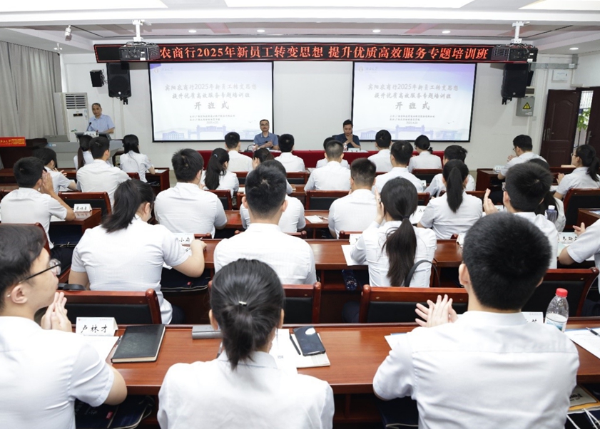 4月25日,宾阳农商行2025年新员工转变思想 提升优质高效服务专题培训班在我院开班。宾阳农商行纪委书记、监事会主席赵小锋出席开班式并作动员讲话,我院培训中心负责人出席开班式并致辞。