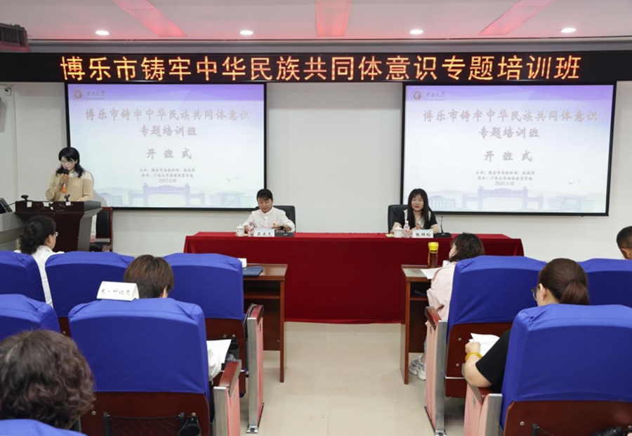 5月18日,博乐市铸牢中华民族共同体意识专题培训班在我院开班。中共博乐市委统战部副部长其米克出席开班式并作动员讲话,我院培训中心负责人出席开班式并致辞。
