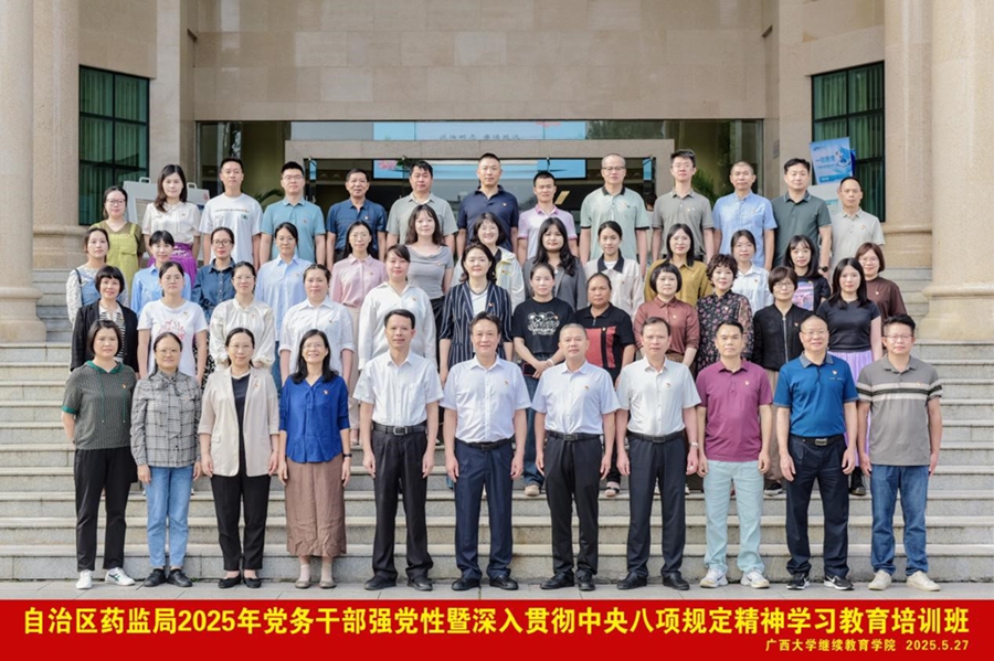 2025年5月27日,自治区药监局2025年党务干部强党性暨深入贯彻中央八项规定精神学习教育培训班在我校开班。自治区药监局党组成员、副局长、机关党委书记韦广辉,AK平台院长闭富春出席开班式并讲话,自治区药监局机关党委专职副书记文杰主持开班式。