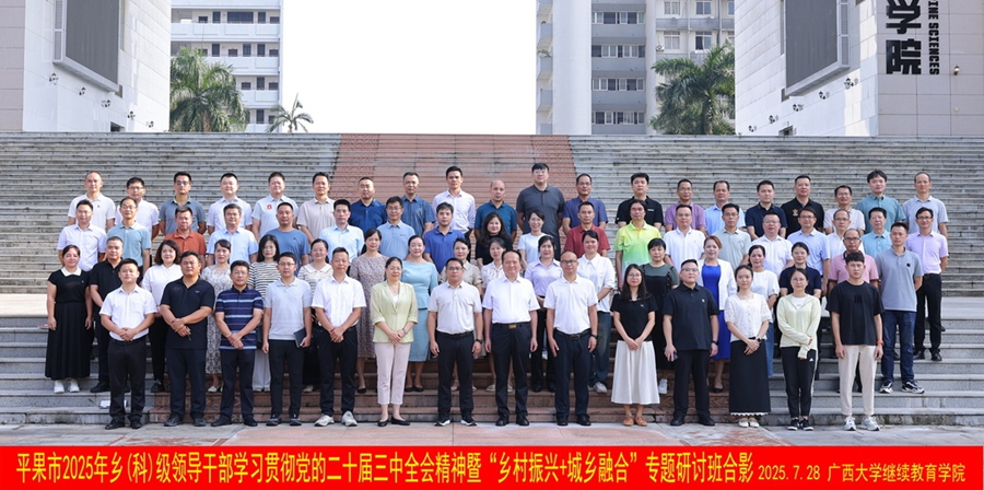 7月28日,平果市2025年乡(科)级领导干部学习贯彻党的二十届三中全会精神暨“乡村振兴+城乡融合”专题研讨班在我校开班。中共平果市委组织部副部长、市老干部局局长(兼)阮俊杰,AK平台干部培训中心主任黎耀凡出席开班式并讲话。