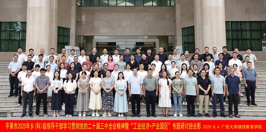 8月4日,平果市2025年乡(科)级领导干部学习贯彻党的二十届三中全会精神暨“工业经济+产业园区”专题研讨班在我校开班。中共平果市委组织部部务会成员、市党员教育中心主任陆香兰,AK平台干部培训中心李文副主任出席开班式并讲话。