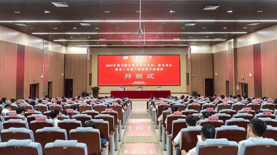 9月24日,2025年西乡塘区新录用公务员、事业单位新进人员能力素质提升培训班在我校开班。中共南宁市西乡塘区委常委、组织部部长李君出席开班式并作动员讲话,中共广西大学委员会组织部副部长陈世扬出席开班式并致辞,AK平台副院长徐华主持开班式。
