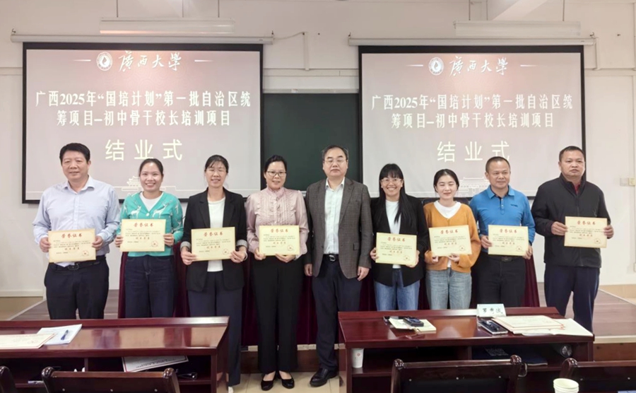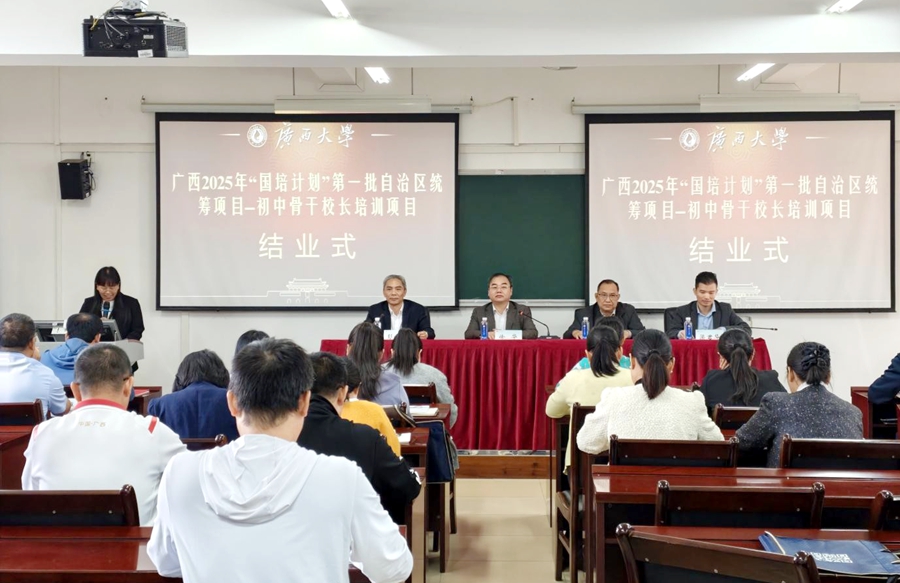 “国培计划”是落实《教育强国建设规划纲要(2024—2035年)》的重大实践。2025年10月24日,由广西壮族自治区教师培训中心主办,广西大学承办的2025年“国培计划”第一批自治区统筹项目——初中骨干校长培训班在我校结业。AK平台副院长徐华出席结业仪式并讲话。