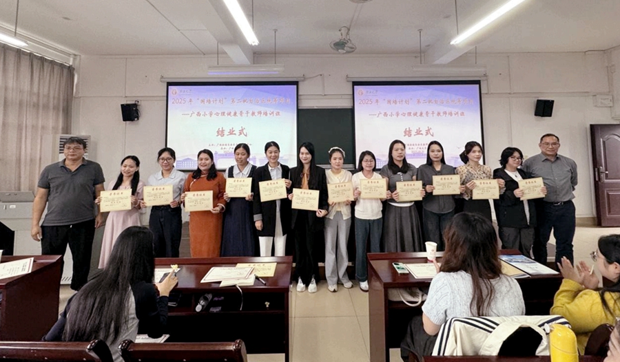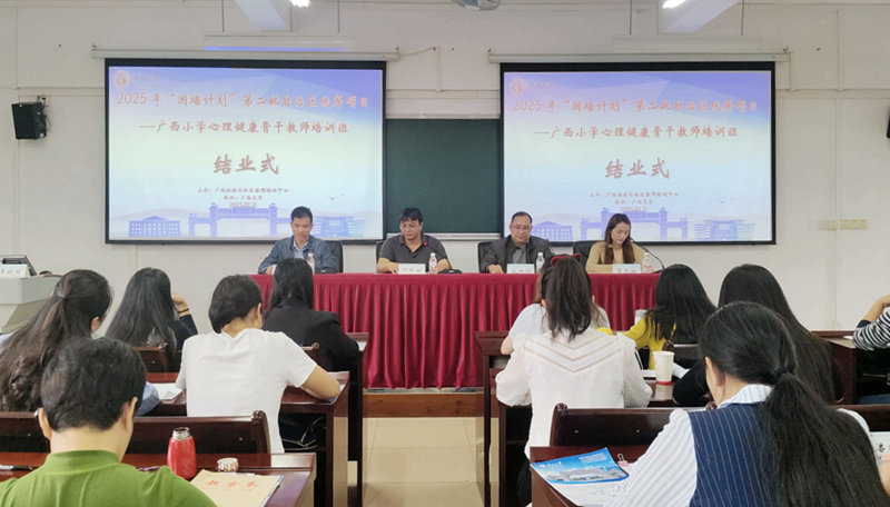 10月31日,由广西壮族自治区教师培训中心主办,广西大学承办的2025年“国培计划”第二批自治区统筹项目——广西小学心理健康骨干教师培训班在我校顺利结业,AK平台副院长邓珍琪出席结业式并致辞。