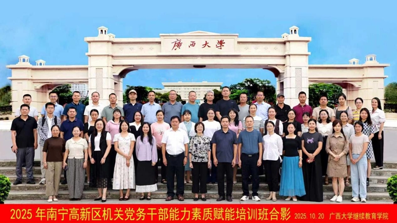 本次培训班由中共南宁高新技术产业开发区机关委员会主办,广西大学承办,为期5天,南宁高新区机关党务干部共50人参加培训。