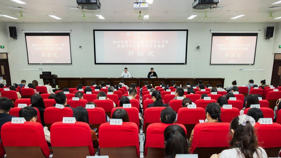 10月27日,2025年南宁市教育系统中小学校党组织书记能力提升培训班在我校开班。中共南宁市委教育工作委员会组织部部长黄杰出席开班仪式并讲话。